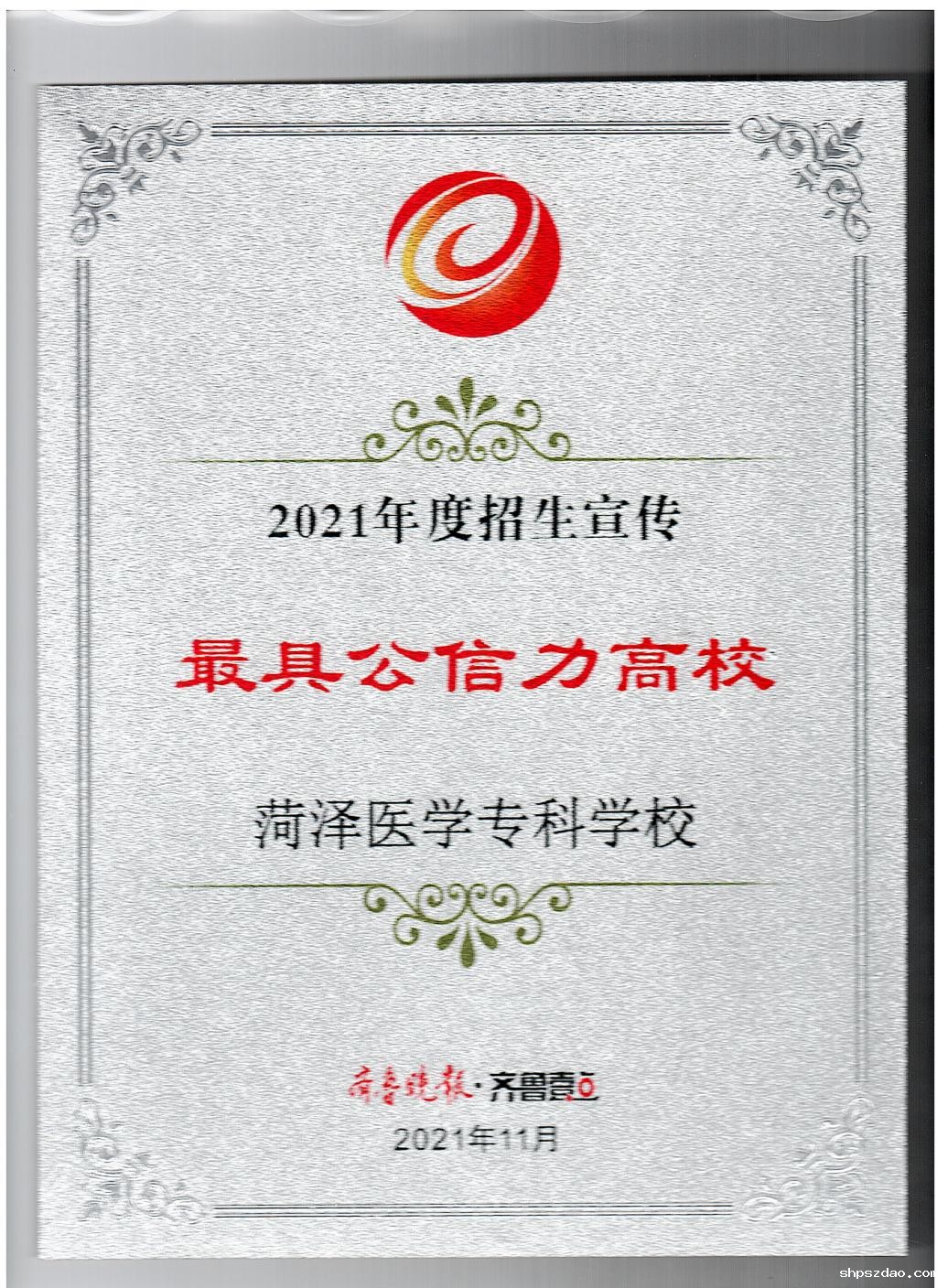 近日,齐鲁晚报发布2021年度招生工作荣誉榜单,我校招生工作获得“2021年度招生宣传最具公信力高校”“2021年度山东高招会最受欢迎高职(专科)院校”两项荣誉。