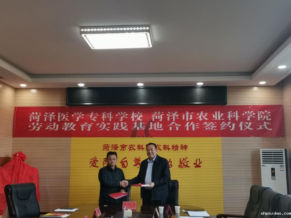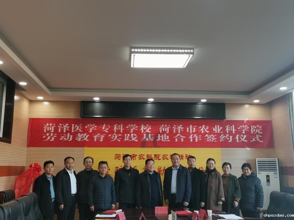 为强化学生劳动素养,提高学生劳动技能、磨炼劳动意志,引导学生树立正确的劳动观,打造我校第二课堂劳动教育精品课程,12月2日下午,我校药学与检验系与菏泽市农业科学院签订了劳动教育实践基地合作协议,我校党委委员、副校长张传宝,学生工作处处长孙战,团委书记于淼,药学与检验系党总支书记田文革,菏泽市农业科学院党委书记黄兴蛟,党委副书记朱启玉,副院长李思同,办公室主任邓仰勇,科研管理科科长程亮等有关同志参加会议。