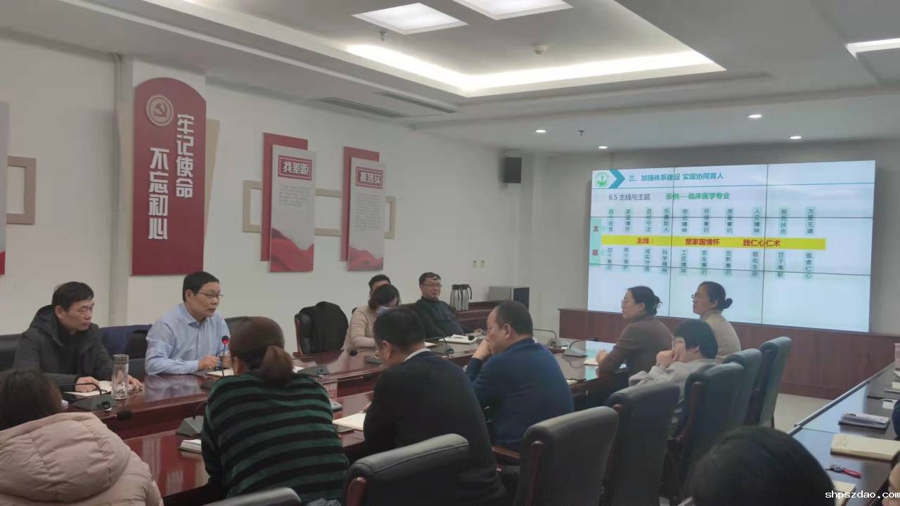顾润国听取汇报后,他首先肯定了近年来我校课程思政体系建设成效,以及中心、各专业和各课程在课程思政建设中取得的成绩,也指出了存在的不足,并对2022年课程思政建设工作的开展提出了具体的要求。顾润国强调,大家要进一步提高政治站位,端正课程思政工作态度,深入学习贯彻落实习近平总书记在全国教育大会上的讲话,落实《高等学校课程思政建设指导纲要》等相关文件精神,切实理解课程思政的内涵,用实际行动去践行人民教师教书育人的光荣使命,守好一段渠,种好责任田,充分发挥每一门课程的育人功能,形成育人合力,培根铸魂,落实立德树人。随后顾润国又以临床医学专业为例,就如何凝练课程思政专业主线、课程主题、课堂话题为切入点,对专业课程思政体系的构建进行了深入的剖析,详尽的解读,为大家进一步深化课程思政建设指明了方向,提供了蓝图。