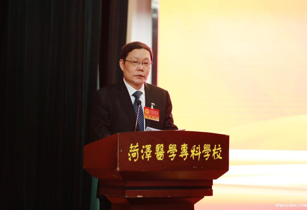 刘守文致贺词。他表示,近年来,菏泽医专工会在加强教职工思想政治工作、强化民主管理、增进师生团结、加强自身建设等方面做出了显著成果。未来,广大工会会员和全体教职工要进一步增强使命感、责任感,弘扬优良传统,挖掘发展潜力,培育办学特色,提高办学质量,为实现学校高质量发展,为菏泽市卫生健康事业和经济社会发展做出新的更大贡献。