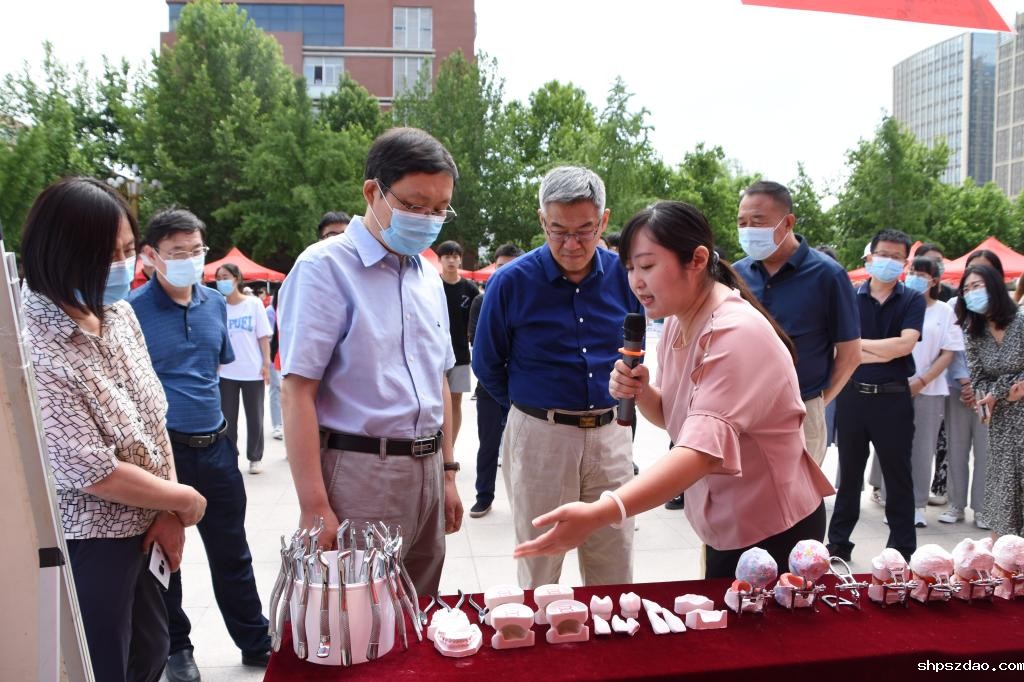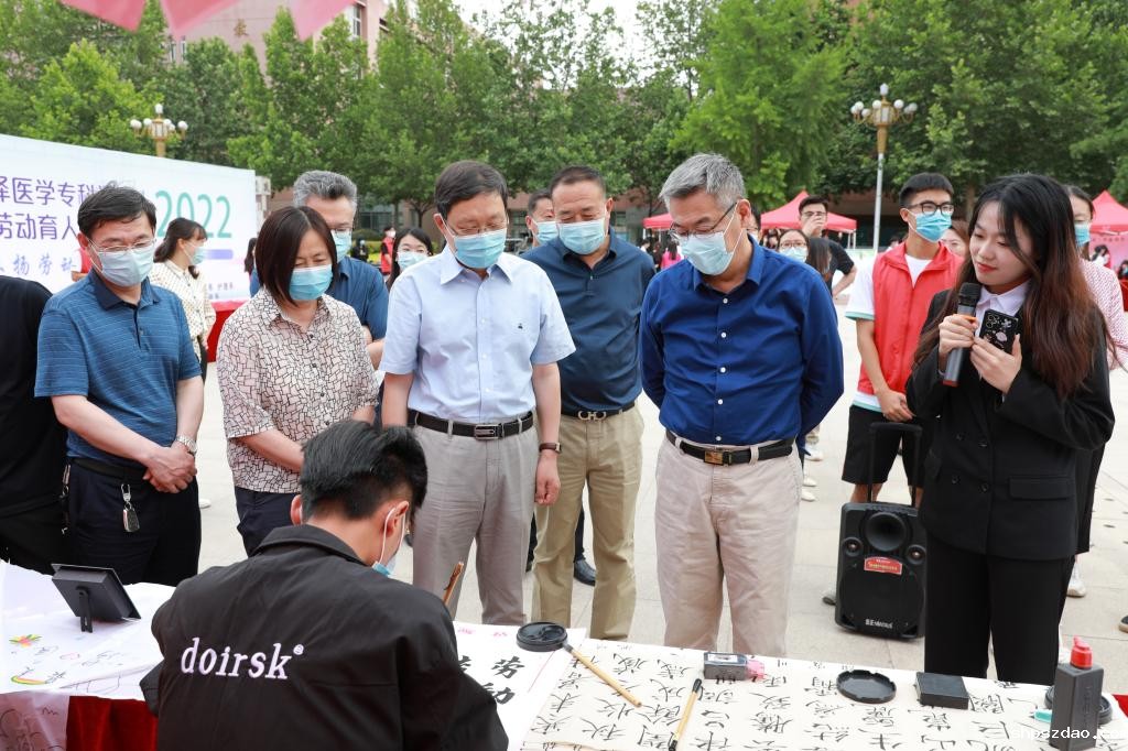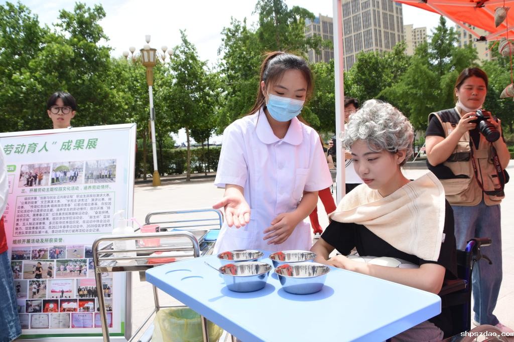 展会现场,校领导在讲解员的带领下依次到各系展位参观,听取各系劳动育人成果介绍,品尝了药学与检验系学生运用专业知识制作的芝麻丸,体验了健康管理系健康小屋设备的健康指标检测,详细询问了护理系手工作品义卖情况,并积极参与到手部保健操的互动中。于洲声充分肯定了学校前期劳动育人成果,他要求,要把劳动教育作为一项重要的工作来抓,劳动教育是落实五育并举的重要工作内容,是坚持落实立德树人的根本任务,要进一步深化劳动育人内涵,全面、系统、有序地推进我校劳动教育。活动现场,各系部劳动能手摆摊展示,各显神通,吸引众多师生驻足观看、交流体验,掀起学校劳动育人展热潮。