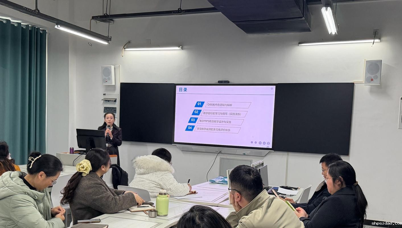 王虹以“基于OBE的SC教学设计”为主题,为在场教师带来了成果导向与学生中心深度融合的教学设计方法论。她首先解读了OBE(成果导向教育)与SC(以学生为中心)的内在逻辑。随后利用工作坊形式从课程目标确定、教学设计重构、教学实践选择、评价体系设计四个维度,拆解了OBE-SC教学设计的完整流程。