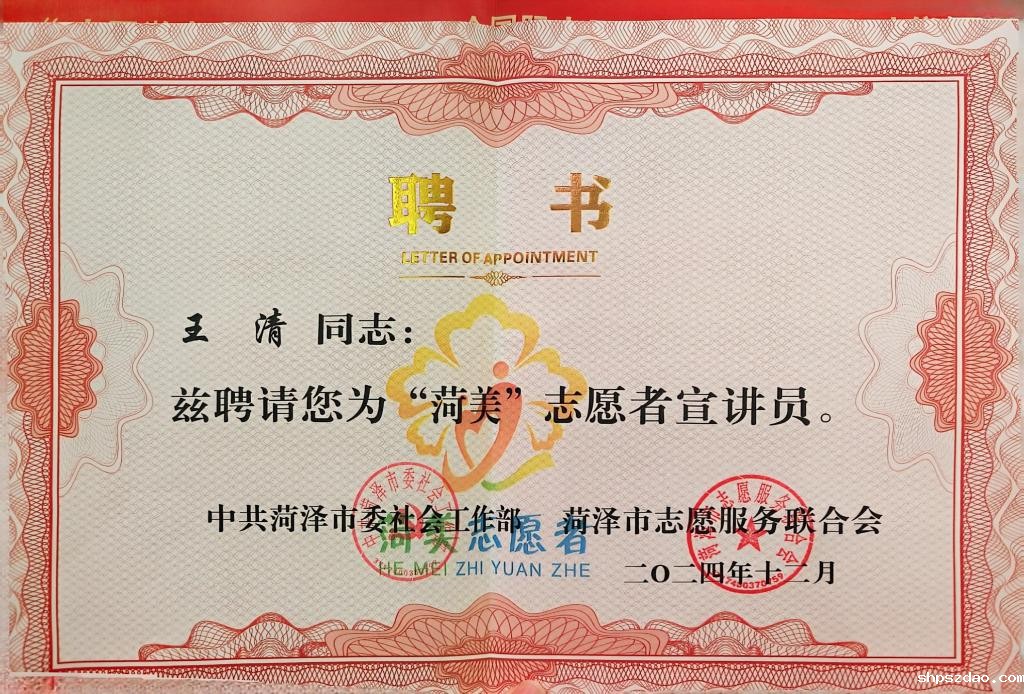 为进一步弘扬志愿服务精神,凝聚文明向善力量,展现新时代志愿服务风采。12月4日,菏泽市委社会工作部、市志愿服务联合会在菏泽学院演播厅举行“志愿微光 汇聚星河”第39个国际志愿者日主题活动启动仪式。我校医学技术系青年教师王清作主题为“守护‘睛’彩,点‘亮’未来”志愿服务项目典型宣讲,并获聘成为菏泽市首批“菏美”志愿者宣讲员。