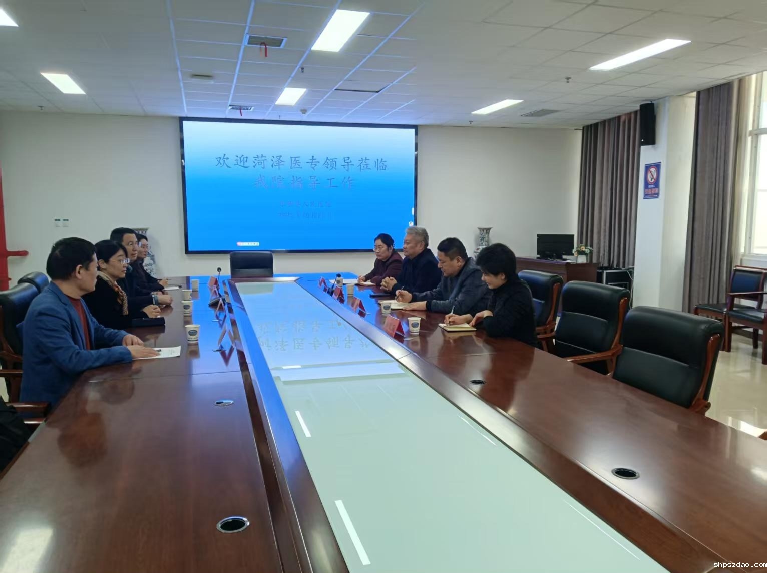 调研组先后走访单县海吉亚医院、单县中心医院、单县东大医院和东明县人民医院。座谈会上,王学贺感谢各医院对实习工作的支持,介绍学校发展规划及 2026 届毕业生情况;双方围绕合作模式升级、实习就业基地共建、人才协同培养等议题深入交流。