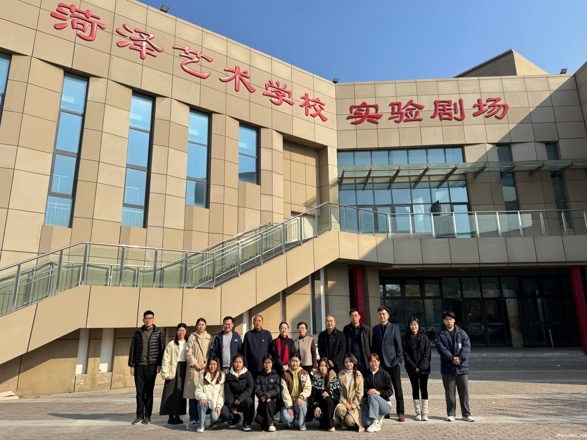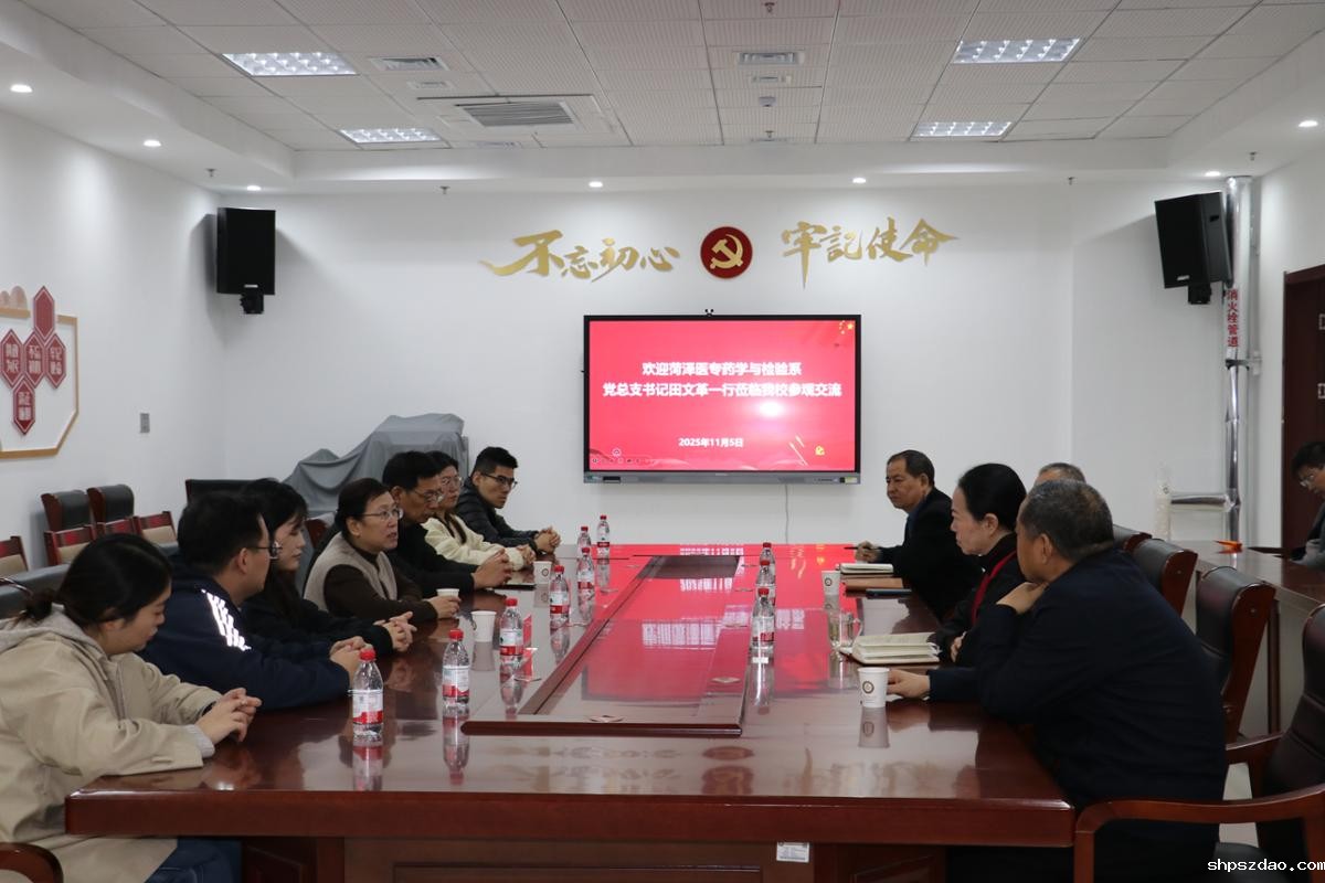 观摩结束后,双方在菏泽艺术学校党建会议室开展了党建工作座谈会。双方就党建工作经验、专业建设、文化育人等方面进行了深入交流。田文革表示,此次观摩学习让药学与检验系的师生们深受触动,菏泽艺术学校在艺术人才培养、传统文化传承方面的成果令人钦佩,希望以此次活动为契机,进一步深化两校在党建、文化、专业等领域的合作,实现资源共享、优势互补、共同发展。 菏泽艺术学校的领导也表示,期待与药学与检验系在更多领域开展合作,通过党建共建搭建起艺术与医药专业交流的桥梁,为培养复合型人才、弘扬传统文化贡献力量。活动最后,两校师生在菏泽艺术学校实验剧场前合影留念。