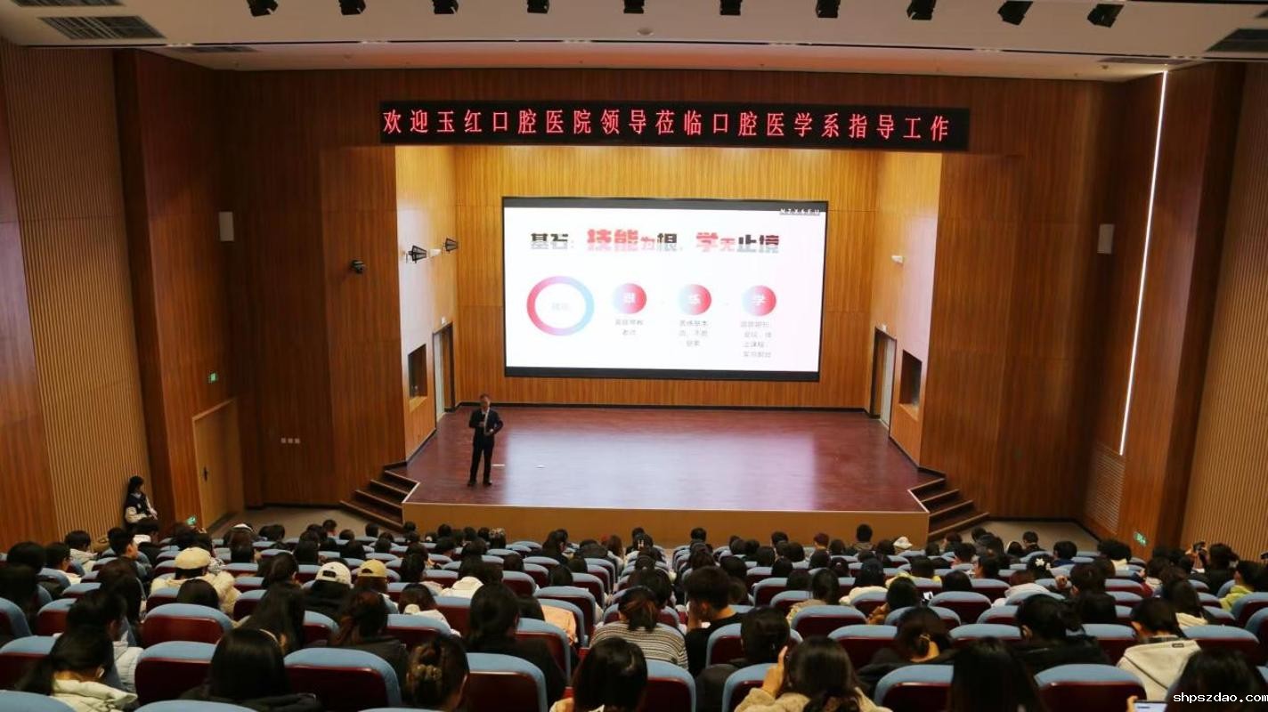 为引导学生明晰职业方向,提升就业竞争力,11月21日下午,我校口腔医学系在师生活动中心举办“口腔大家谈第三讲”职业规划与就业指导宣讲会。特邀玉红口腔医院创始人、院长贾玉红主讲,校企合作与培训就业处处长王学贺、副处长王宗军,口腔医学系党总支副书记牟翠荣、副主任张景华及系部师生300余人参与活动。