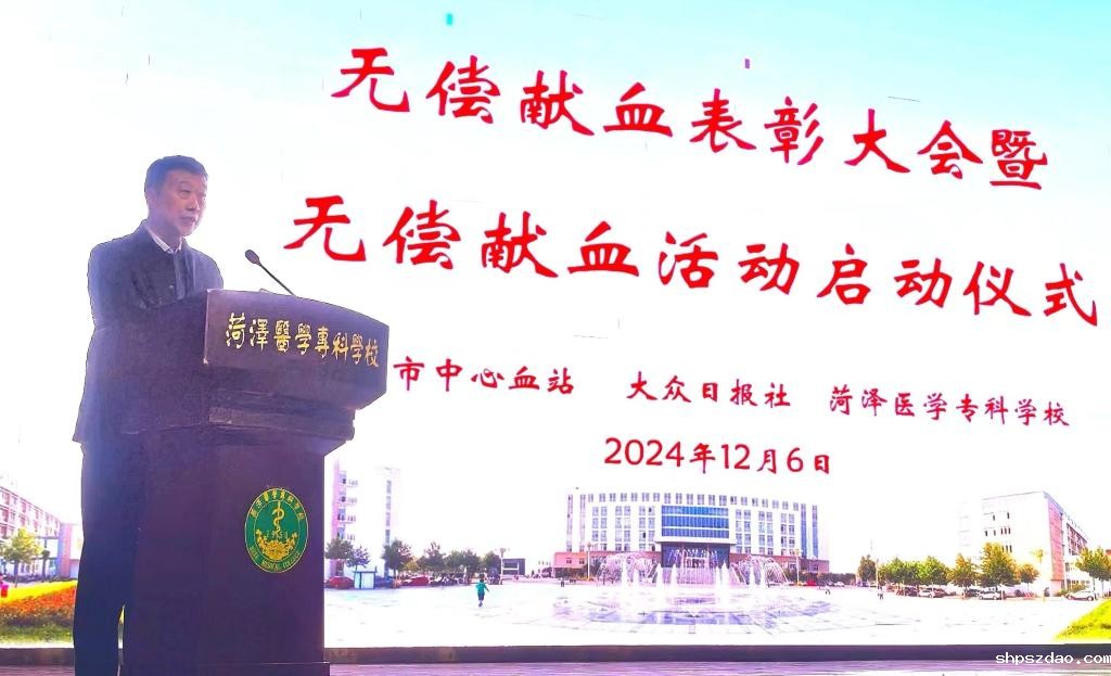 12月7日下午,我校召开无偿献血表彰大会暨无偿献血活动启动仪式,校党委委员、副校长齐云飞,菏泽市中心血站党总支书记、站长谢颂世,大众日报菏泽记者站站长王兆峰、菏泽市中心血站副站长李伟、大众日报菏泽记者站主任郭丽、校团委书记于淼、各学生系部党总支书记以及400余名学生代表参加大会。仪式由学生工作处处长孙战主持,大众日报对此次活动进行专项报道。