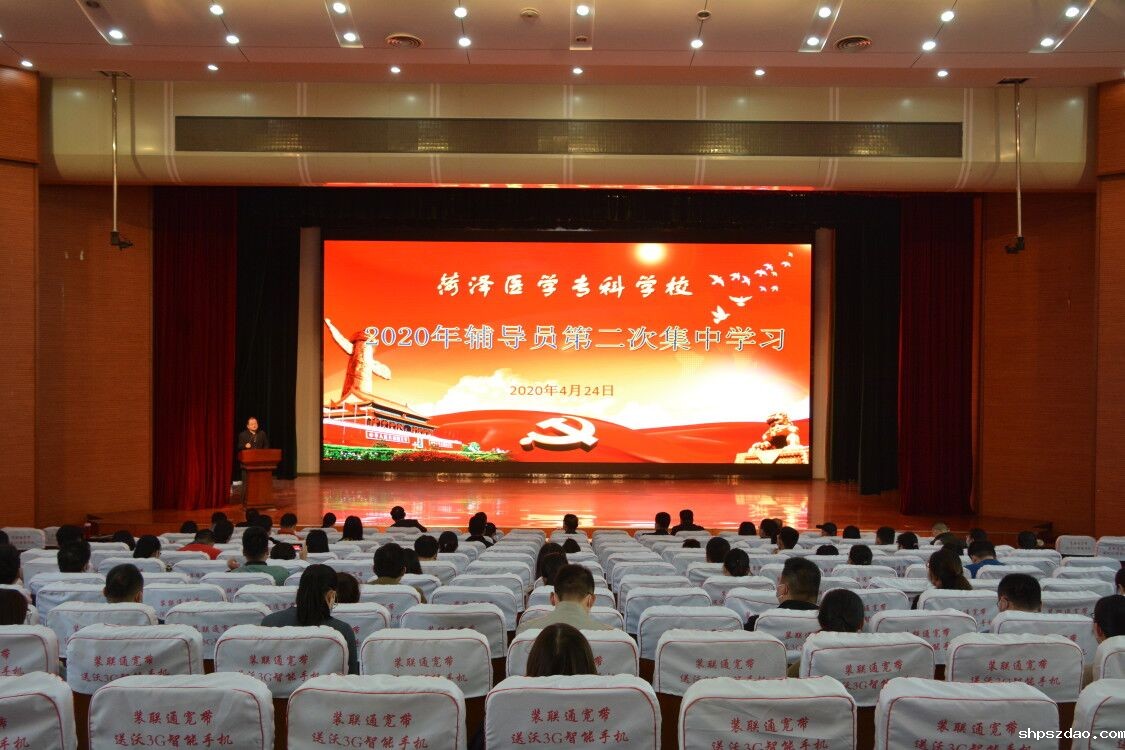 4月24日下午,我校在学术报告厅开展2020年辅导员第二次集中学习活动,副校长张传宝,各系党总支书记、副书记、全体专兼职辅导员90余人参加学习。学生工作处郭树榜带领大家学习《习近平关于社会主义文化建设论述摘编》中关于“坚定文化自信,建设社会主义文化强国”的重要论述。
