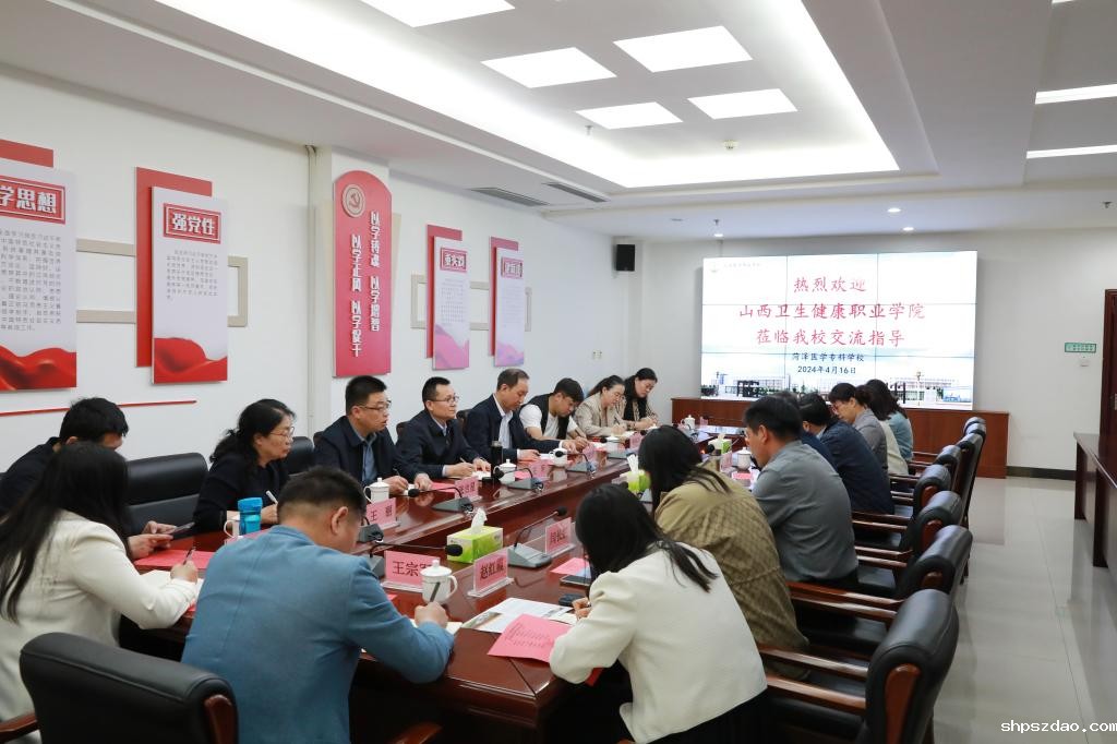 4月16日,山西卫生健康职业学院党委副书记、院长王轩、党委副书记赵建君等一行9人到到我校调研座谈交流。校党委副书记蒋继国和相关部门负责人等同志参加了座谈。会议由蒋继国同志主持。