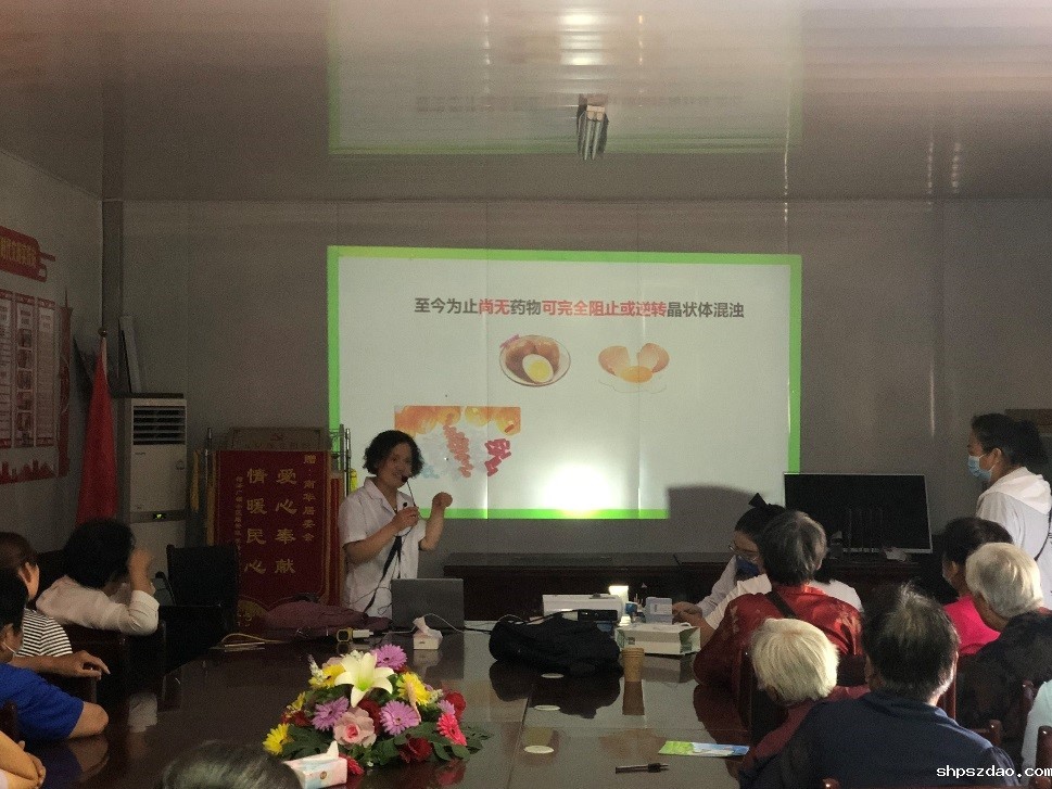 6月6日,开展健康科普专家下基层活动。在西城办事处南华社区举办眼健康大讲堂活动——老年眼健康,由王勇教授和戴馨教授为老年人开展健康爱眼科普讲座,提高眼健康知晓度,提升群众眼病防治意识,培养正确就医理念。
